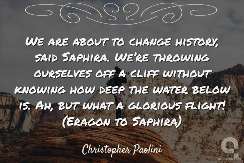 We are about to change history, said Saphira. We’re throwing ourselves off a cliff without knowing how deep the water below is. Ah, but what a glorious flight! (Eragon to Saphira)
