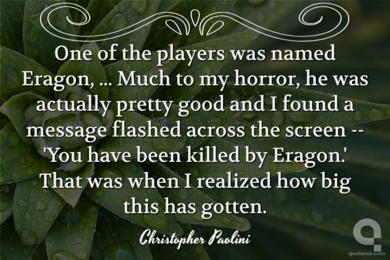 One of the players was named Eragon, ... Much to my horror, he was actually pretty good and I found a message flashed across the screen -- 'You have been killed by Eragon.' That was when I realized how big this has gotten.