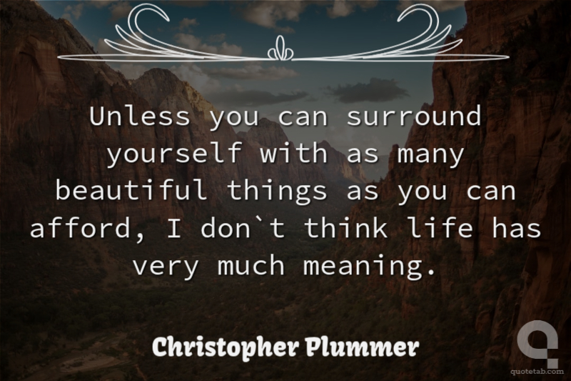 Unless you can surround yourself with as many beautiful things as you can afford, I don`t think life has very much meaning.