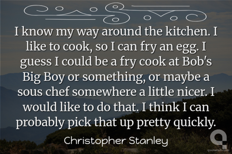 I know my way around the kitchen. I like to cook, so I can fry an egg. I guess I could be a fry cook at Bob's Big Boy or something, or maybe a sous chef somewhere a little nicer. I would like to do that. I think I can probably pick that up pretty quickly.