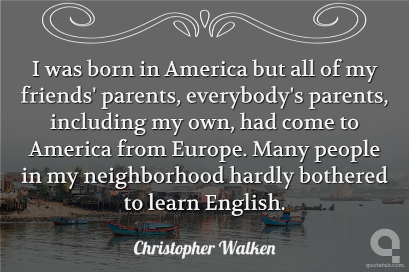 I was born in America but all of my friends' parents, everybody's parents, including my own, had come to America from Europe. Many people in my neighborhood hardly bothered to learn English.