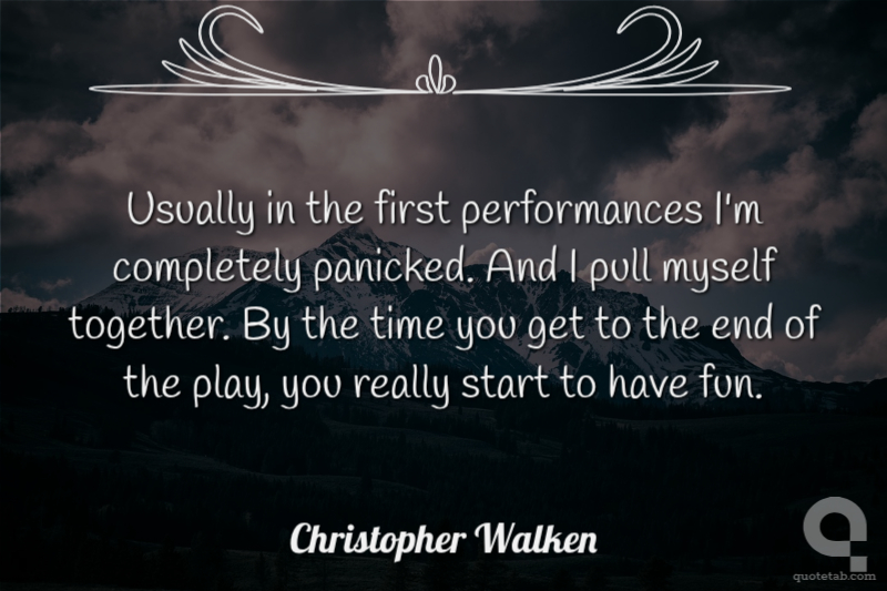 Usually in the first performances I'm completely panicked. And I pull myself together. By the time you get to the end of the play, you really start to have fun.