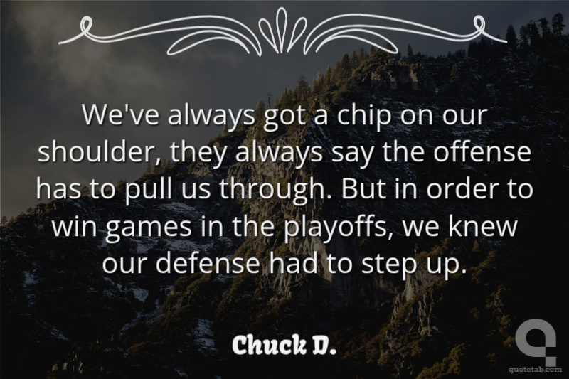 We've always got a chip on our shoulder, they always say the offense has to pull us through. But in order to win games in the playoffs, we knew our defense had to step up.