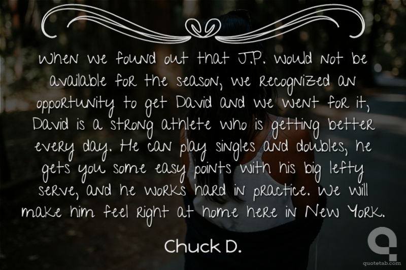 When we found out that J.P. would not be available for the season, we recognized an opportunity to get David and we went for it, David is a strong athlete who is getting better every day. He can play singles and doubles, he gets you some easy points with his big lefty serve, and he works hard in practice. We will make him feel right at home here in New York.