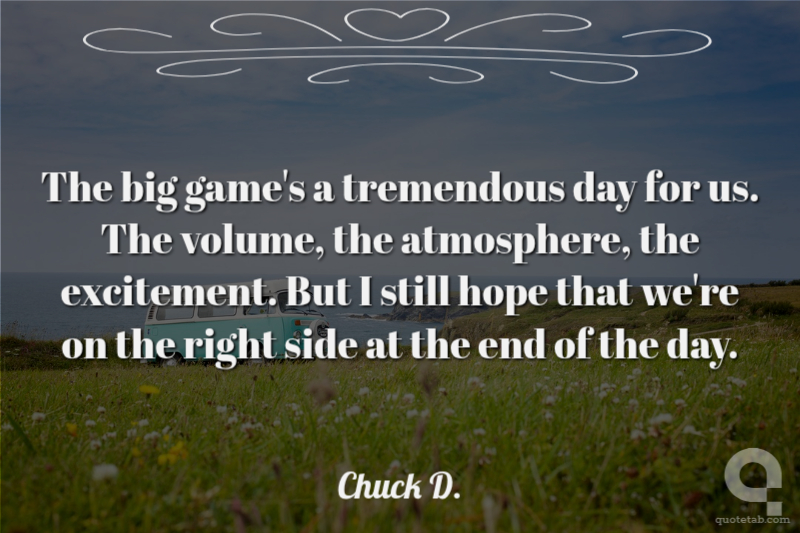 The big game's a tremendous day for us. The volume, the atmosphere, the excitement. But I still hope that we're on the right side at the end of the day.