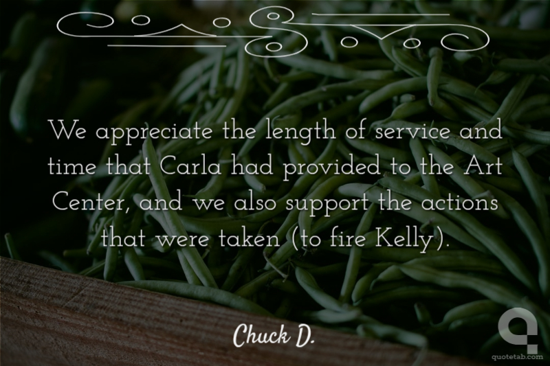 We appreciate the length of service and time that Carla had provided to the Art Center, and we also support the actions that were taken (to fire Kelly).