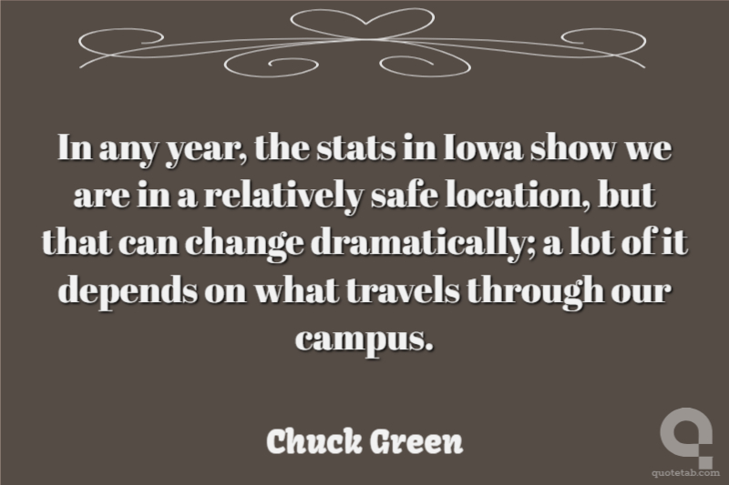 In any year, the stats in Iowa show we are in a relatively safe location, but that can change dramatically; a lot of it depends on what travels through our campus.
