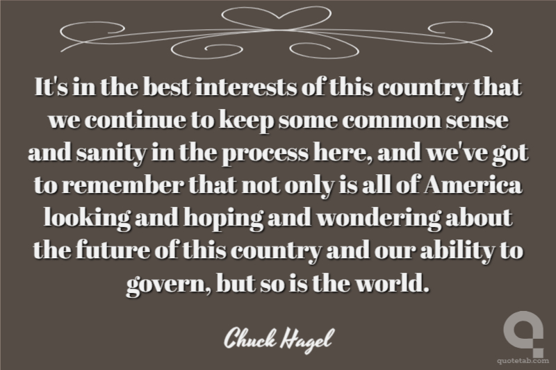 It's in the best interests of this country that we continue to keep some common sense and sanity in the process here, and we've got to remember that not only is all of America looking and hoping and wondering about the future of this country and our ability to govern, but so is the world.