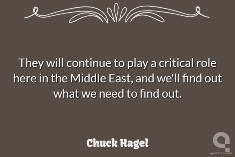 They will continue to play a critical role here in the Middle East, and we'll find out what we need to find out.