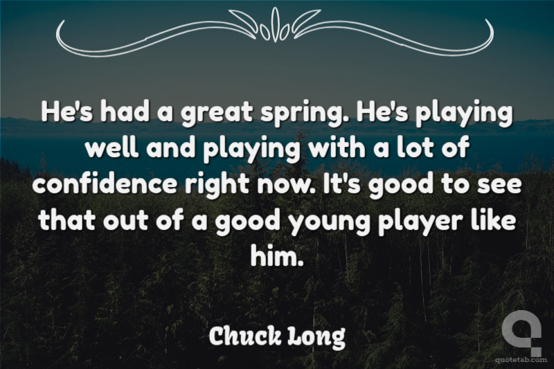 He's had a great spring. He's playing well and playing with a lot of confidence right now. It's good to see that out of a good young player like him.