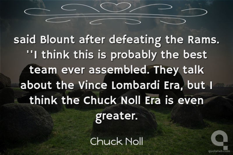said Blount after defeating the Rams. ''I think this is probably the best team ever assembled. They talk about the Vince Lombardi Era, but I think the Chuck Noll Era is even greater.