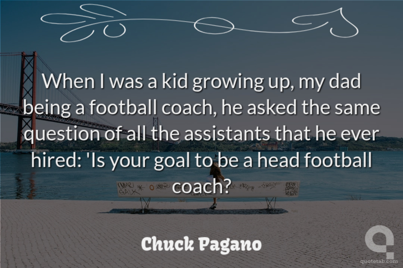 When I was a kid growing up, my dad being a football coach, he asked the same question of all the assistants that he ever hired: 'Is your goal to be a head football coach?