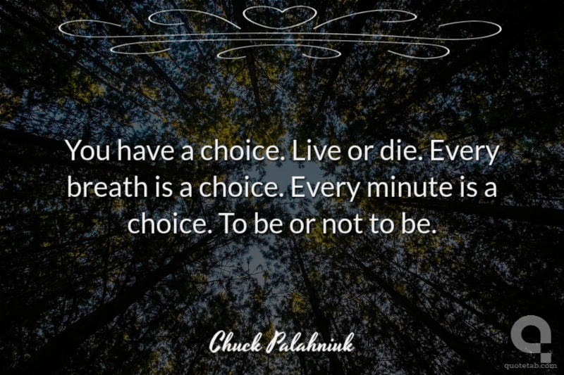 You have a choice. Live or die. Every breath is a choice. Every minute is a choice. To be or not to be.