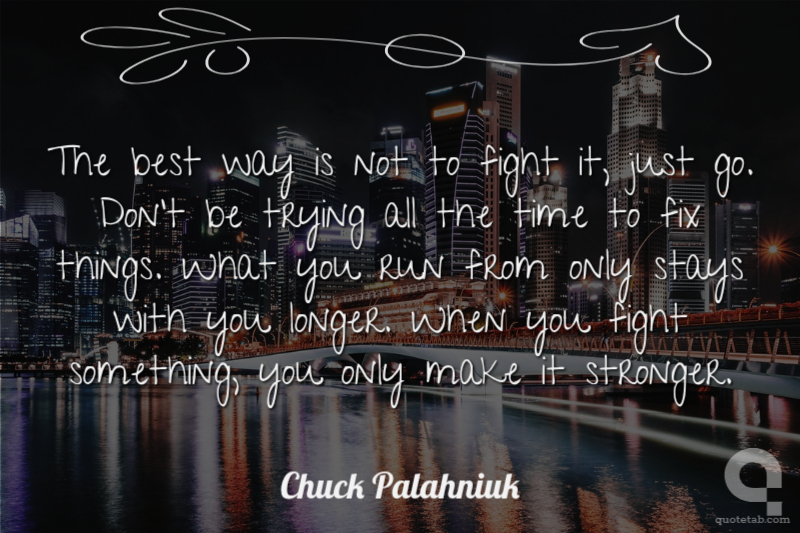 The best way is not to fight it, just go. Don't be trying all the time to fix things. What you run from only stays with you longer. When you fight something, you only make it stronger.