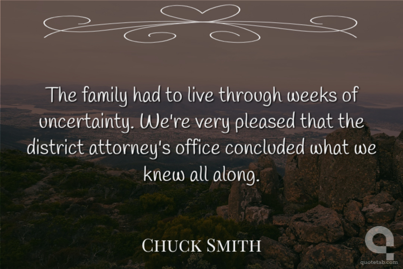 The family had to live through weeks of uncertainty. We're very pleased that the district attorney's office concluded what we knew all along.