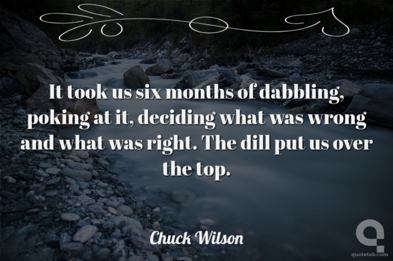 It took us six months of dabbling, poking at it, deciding what was wrong and what was right. The dill put us over the top.