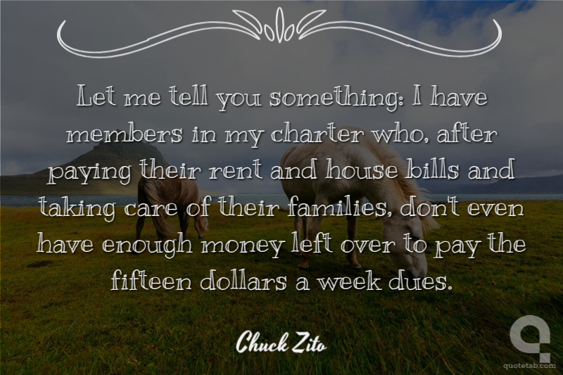 Let me tell you something: I have members in my charter who, after paying their rent and house bills and taking care of their families, don't even have enough money left over to pay the fifteen dollars a week dues.