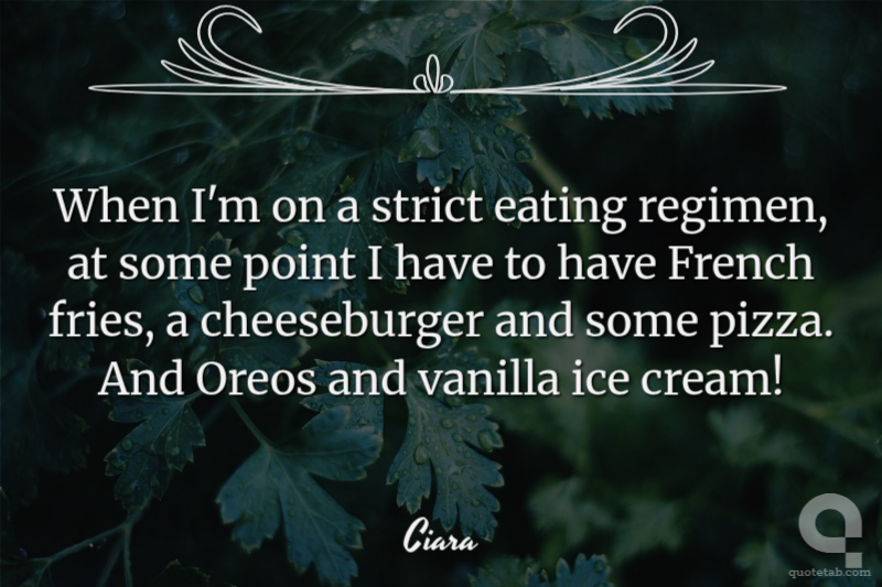 When I'm on a strict eating regimen, at some point I have to have French fries, a cheeseburger and some pizza. And Oreos and vanilla ice cream!