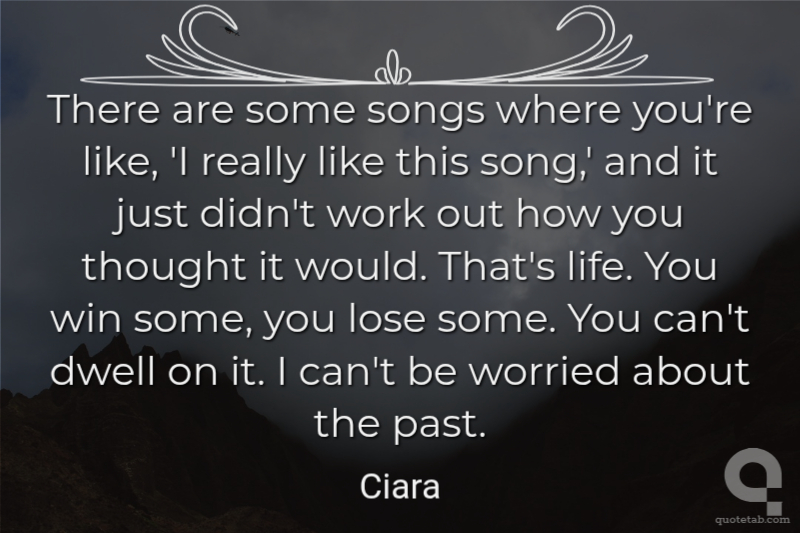 There are some songs where you're like, 'I really like this song,' and it just didn't work out how you thought it would. That's life. You win some, you lose some. You can't dwell on it. I can't be worried about the past.