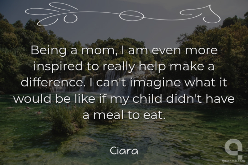 Being a mom, I am even more inspired to really help make a difference. I can't imagine what it would be like if my child didn't have a meal to eat.