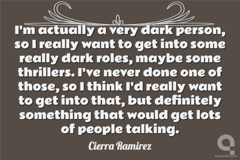 I'm actually a very dark person, so I really want to get into some really dark roles, maybe some thrillers. I've never done one of those, so I think I'd really want to get into that, but definitely something that would get lots of people talking.