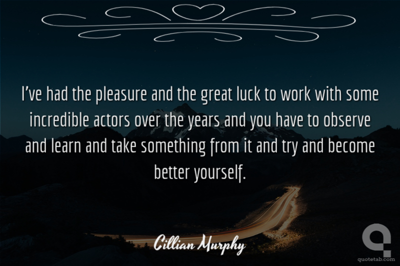I've had the pleasure and the great luck to work with some incredible actors over the years and you have to observe and learn and take something from it and try and become better yourself.