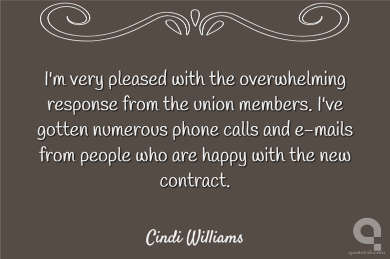 I'm very pleased with the overwhelming response from the union members. I've gotten numerous phone calls and e-mails from people who are happy with the new contract.