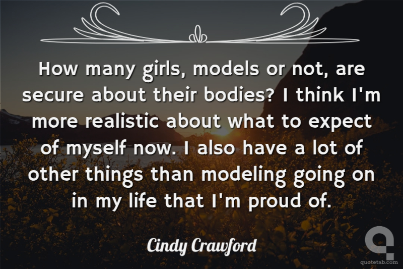 How many girls, models or not, are secure about their bodies? I think I'm more realistic about what to expect of myself now. I also have a lot of other things than modeling going on in my life that I'm proud of.