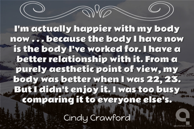 I'm actually happier with my body now . . . because the body I have now is the body I've worked for. I have a better relationship with it. From a purely aesthetic point of view, my body was better when I was 22, 23. But I didn't enjoy it. I was too busy comparing it to everyone else's.