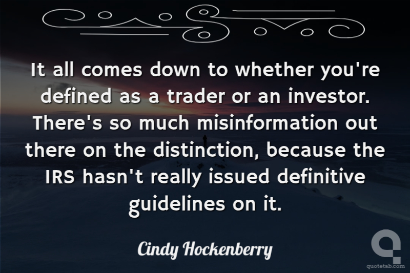 It all comes down to whether you're defined as a trader or an investor. There's so much misinformation out there on the distinction, because the IRS hasn't really issued definitive guidelines on it.