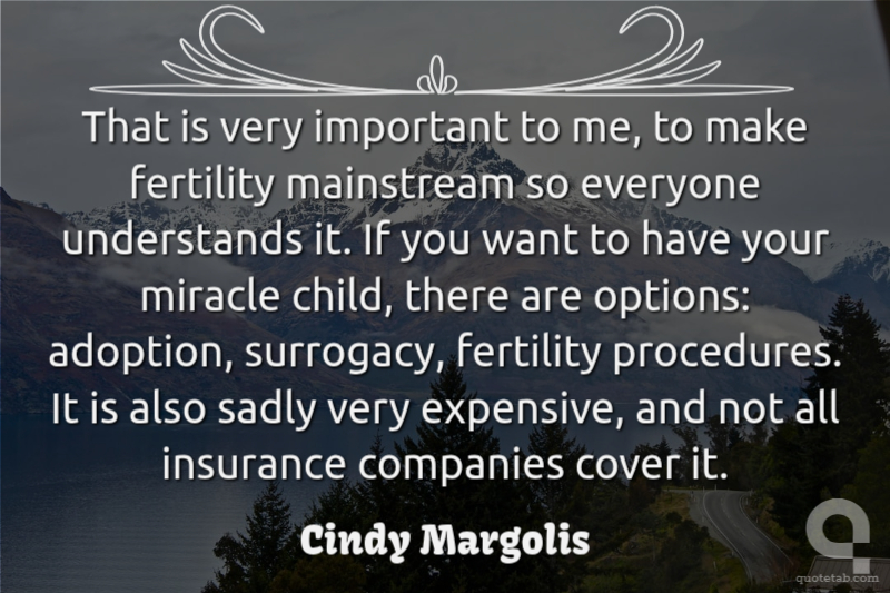 That is very important to me, to make fertility mainstream so everyone understands it. If you want to have your miracle child, there are options: adoption, surrogacy, fertility procedures. It is also sadly very expensive, and not all insurance companies cover it.