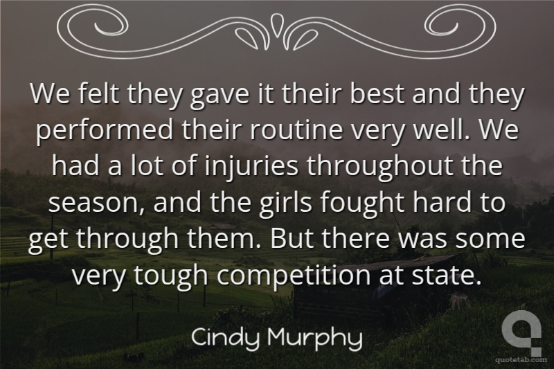 We felt they gave it their best and they performed their routine very well. We had a lot of injuries throughout the season, and the girls fought hard to get through them. But there was some very tough competition at state.