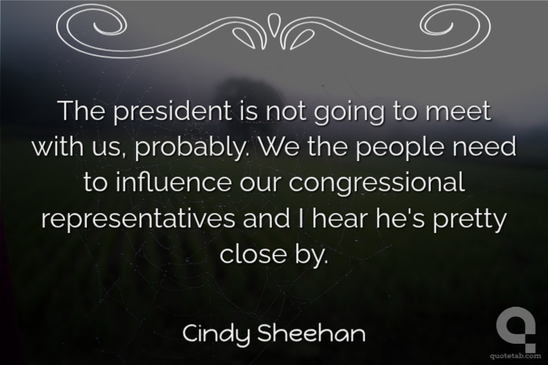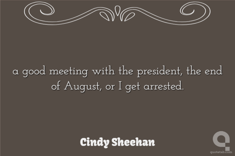 I look back on it, and I am very, very, very grateful he did not meet with me, because we have sparked and galvanized the peace movement, ... If he'd met with me, then I would have gone home, and it would have ended there.
