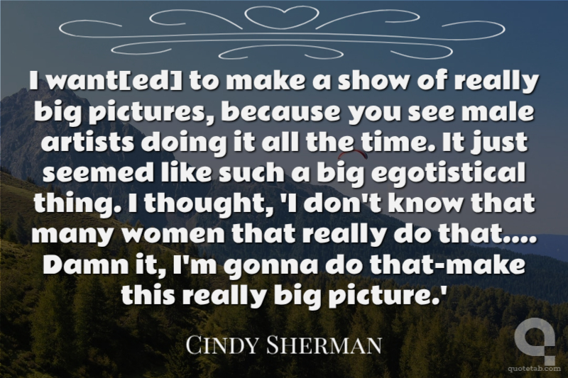 I want[ed] to make a show of really big pictures, because you see male artists doing it all the time. It just seemed like such a big egotistical thing. I thought, 'I don't know that many women that really do that.... Damn it, I'm gonna do that-make this really big picture.'
