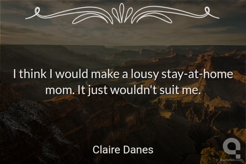 I think I would make a lousy stay-at-home mom. It just wouldn't suit me.