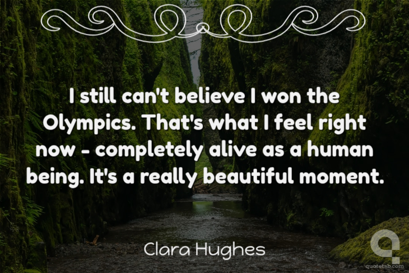 I still can't believe I won the Olympics. That's what I feel right now - completely alive as a human being. It's a really beautiful moment.