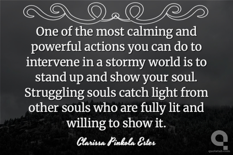 Ours is not the task of fixing the entire world all at once, but of stretching out to mend the part of the world that is within our reach. One of the most calming and powerful actions you can do to intervene in a stormy world is to stand up and show your soul. Soul on deck shines like gold in dark times. The light of the soul throws sparks, can send up flares, builds signal fires.