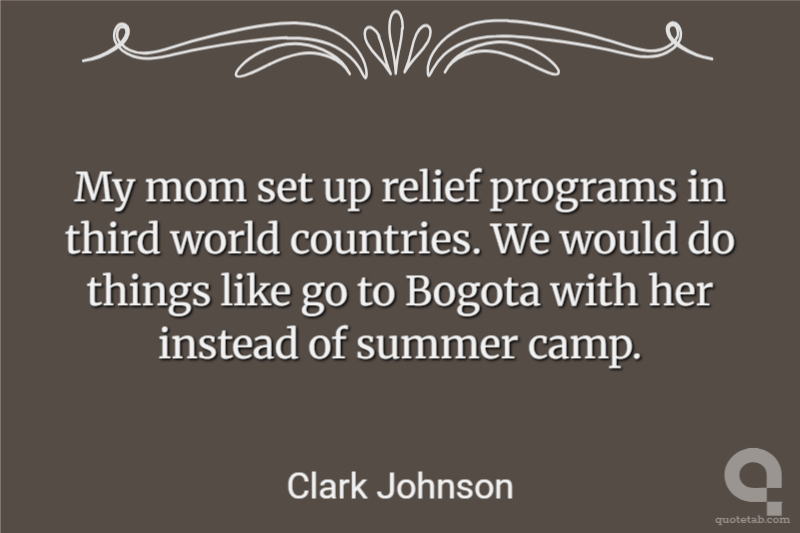 My mom set up relief programs in third world countries. We would do things like go to Bogota with her instead of summer camp.