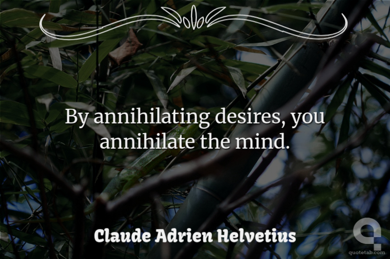 By annihilating the desires, you annihilate the mind. Every man without passions has within him no principle of action, nor motive to act.