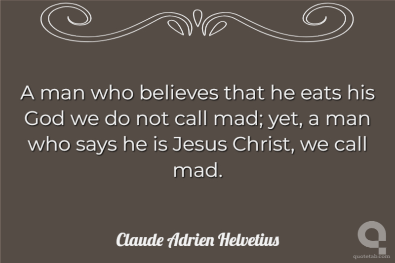 A man who believes that he eats his God we do not call mad; yet, a man who says he is Jesus Christ, we call mad.