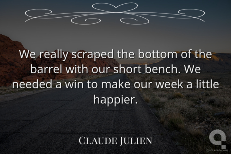 We really scraped the bottom of the barrel with our short bench. We needed a win to make our week a little happier.