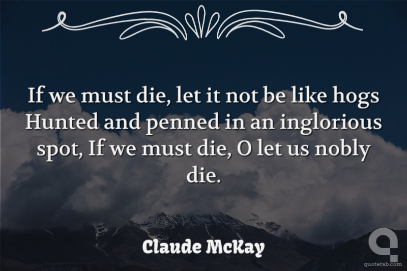 If we must die, let it not be like hogs Hunted and penned in an inglorious spot, If we must die, O let us nobly die.