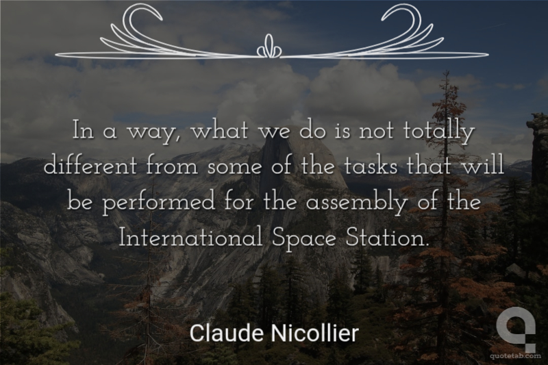 In a way, what we do is not totally different from some of the tasks that will be performed for the assembly of the International Space Station.