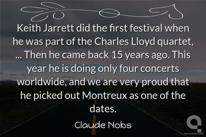 Keith Jarrett did the first festival when he was part of the Charles Lloyd quartet, ... Then he came back 15 years ago. This year he is doing only four concerts worldwide, and we are very proud that he picked out Montreux as one of the dates.