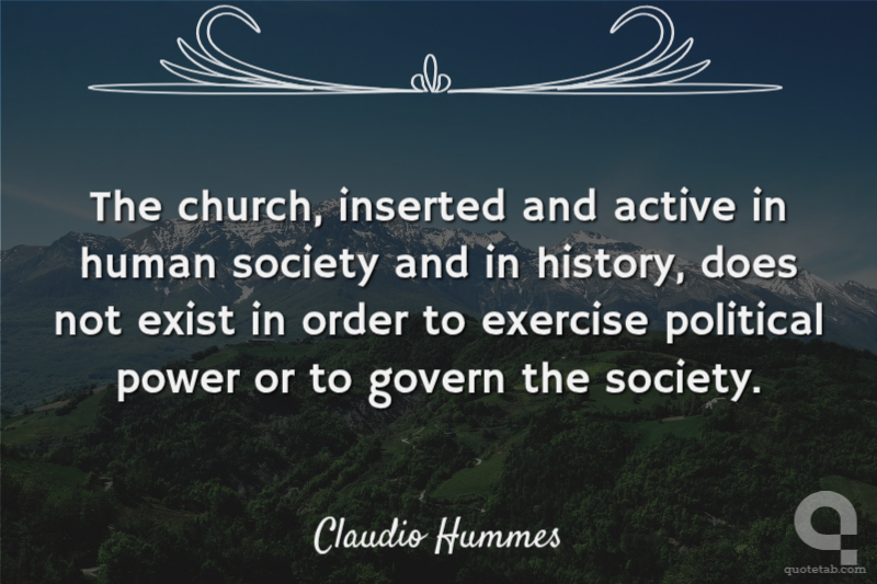 The church, inserted and active in human society and in history, does not exist in order to exercise political power or to govern the society.