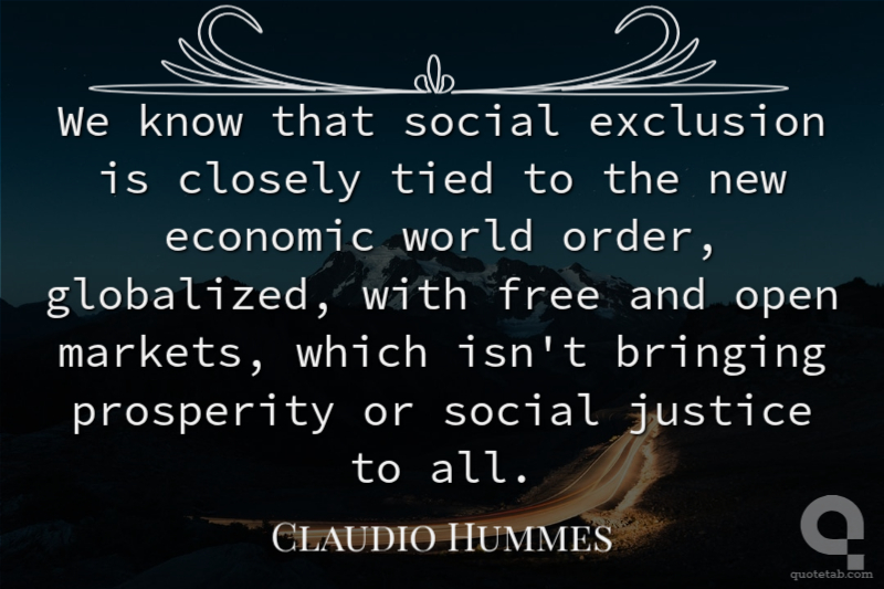 We know that social exclusion is closely tied to the new economic world order, globalized, with free and open markets, which isn't bringing prosperity or social justice to all.