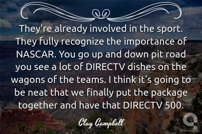 They're already involved in the sport. They fully recognize the importance of NASCAR. You go up and down pit road you see a lot of DIRECTV dishes on the wagons of the teams. I think it's going to be neat that we finally put the package together and have that DIRECTV 500.