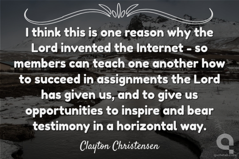 I think this is one reason why the Lord invented the Internet - so members can teach one another how to succeed in assignments the Lord has given us, and to give us opportunities to inspire and bear testimony in a horizontal way.
