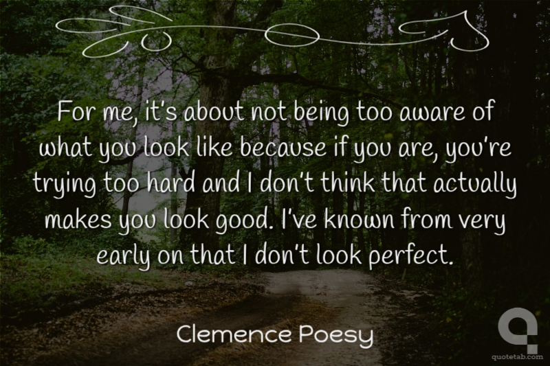 For me, it’s about not being too aware of what you look like because if you are, you’re trying too hard and I don’t think that actually makes you look good. I’ve known from very early on that I don’t look perfect.