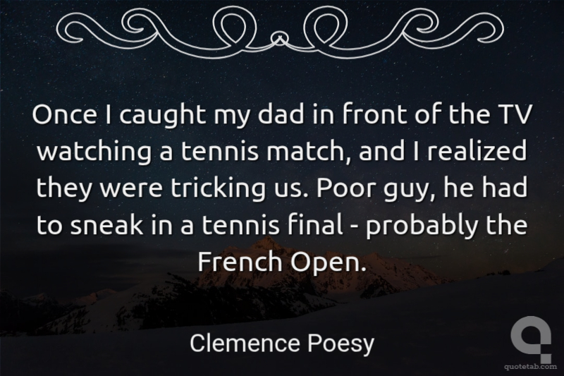 Once I caught my dad in front of the TV watching a tennis match, and I realized they were tricking us. Poor guy, he had to sneak in a tennis final - probably the French Open.